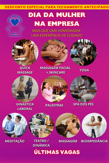 Somos uma empresa de especialistas em levar soluções de saúde, qualidade de vida e bem-estar para empresas e eventos de Belo Horizonte e região